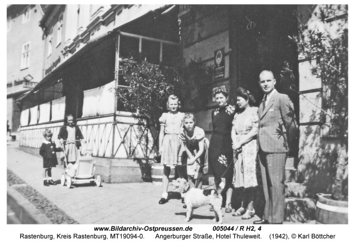 von links: Ingrid Kiaulehn, Kindermädchen Erna Marks (Klein-Erna), im Kinderwagen Helga Böttcher, Anneliese und Irmgard Krappmann, Gertie Böttcher, Frau Krappmann, Gustav Böttcher.