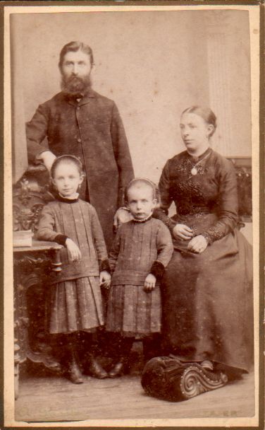 Jakob Diedrich mit Frau, im Vordergrund links Tochter Anna, rechts Tochter Katharine