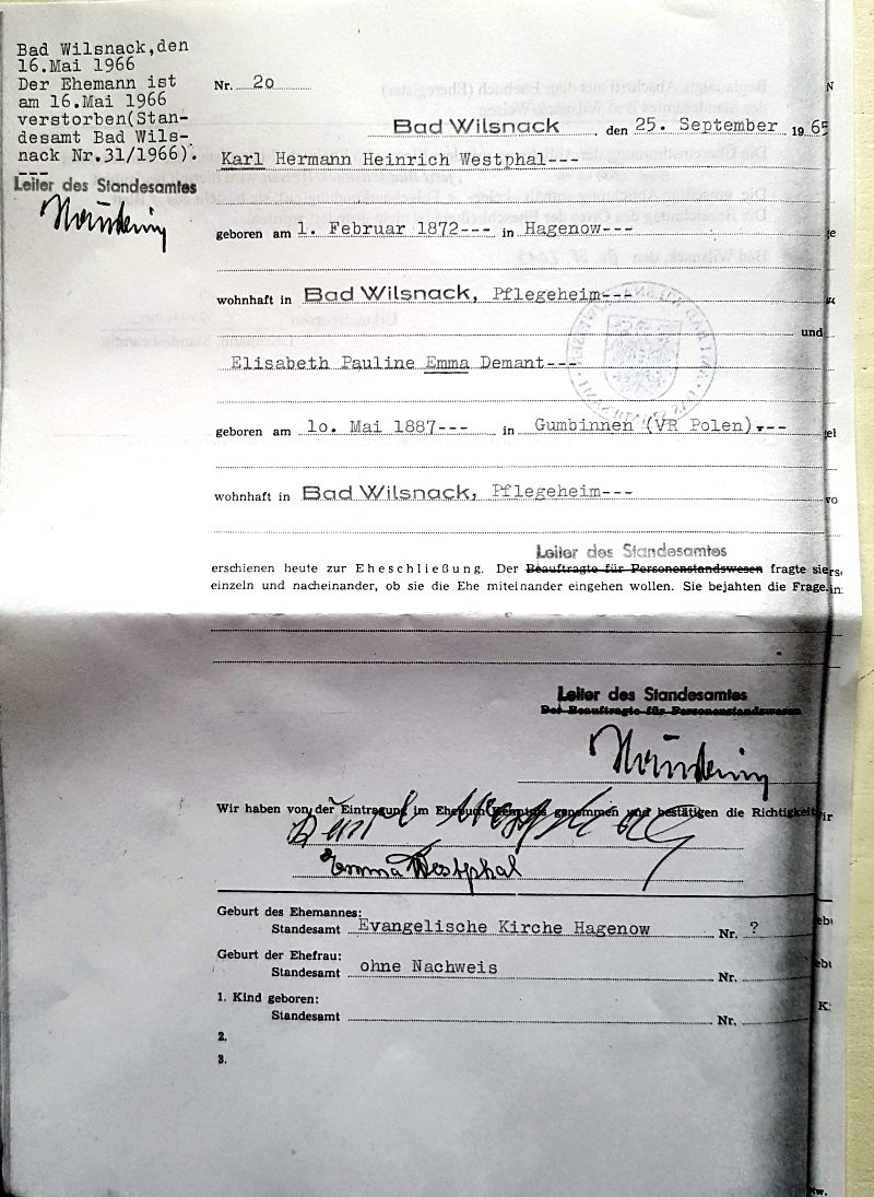 Karl Westphal und Demant Emmi Eheschließung